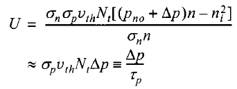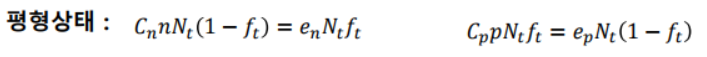 앞에서 언급한 식은 트랩을 통한 전도대 전자와 가전자대 정공이 재결합하거나 발생하는 비율에 대한 일반적인 식이다.