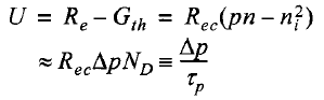 indirect-bandgap 반도체의 경우, Rec~10-15cm^3/s.