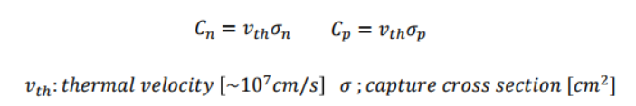 Cn과 Cp 는 각각 전자와 홀 포획률의 비례상수로서, 전자와 정공이 트랩에 얼마나 접근하면