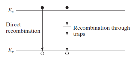 Shockley-Read-Hall recombination : 전자와 홀이 직접 만나서 재결합되지 않고,