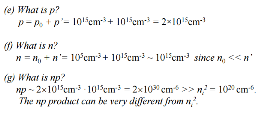 만약, 전자와 정공의 농도가 평형상태 값보다 많아지거나, 적어질 경우에는