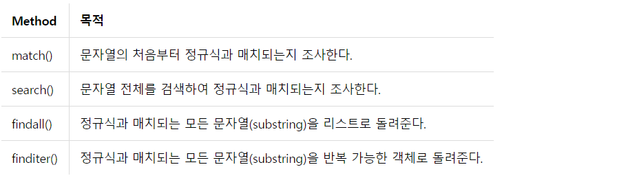 객체 = re.compile('패턴') 으로 저장하여 다른 메서드에 적용가능하다.