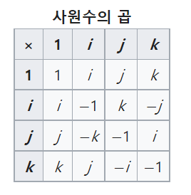 사원수들 간의 곱셈도 가능하다.