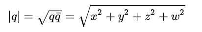 복소수에서 크기를 구하듯이사원수도 크기(노름)을 구할 수 있다.